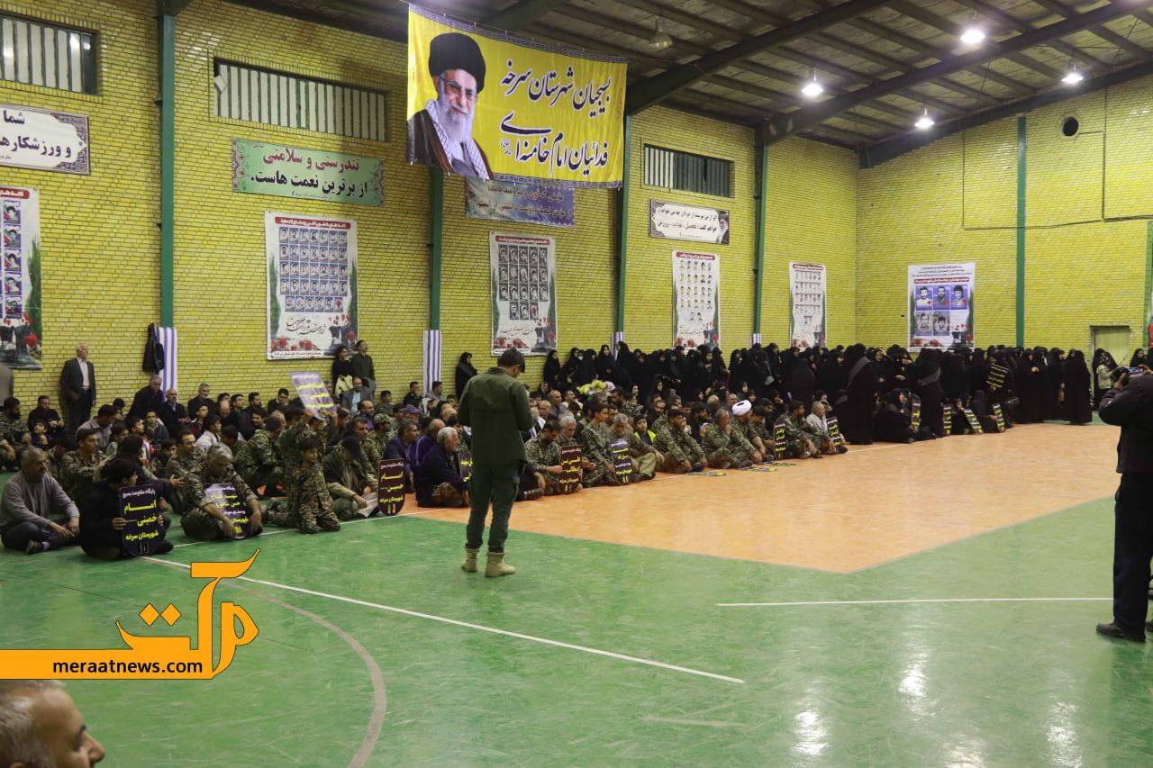 مراسمی که با سخنرانی سردار استادحسینی از فرماندهان سپاه و حضور گسترده بسیجیان در سالن ورزشی امام خمینی (ره) سپاه سرخه و با هدف پاسداشت فرهنگ ایثار، خدمت و نقشآفرینی اجتماعی بسیجیان به اجرا درآمد.