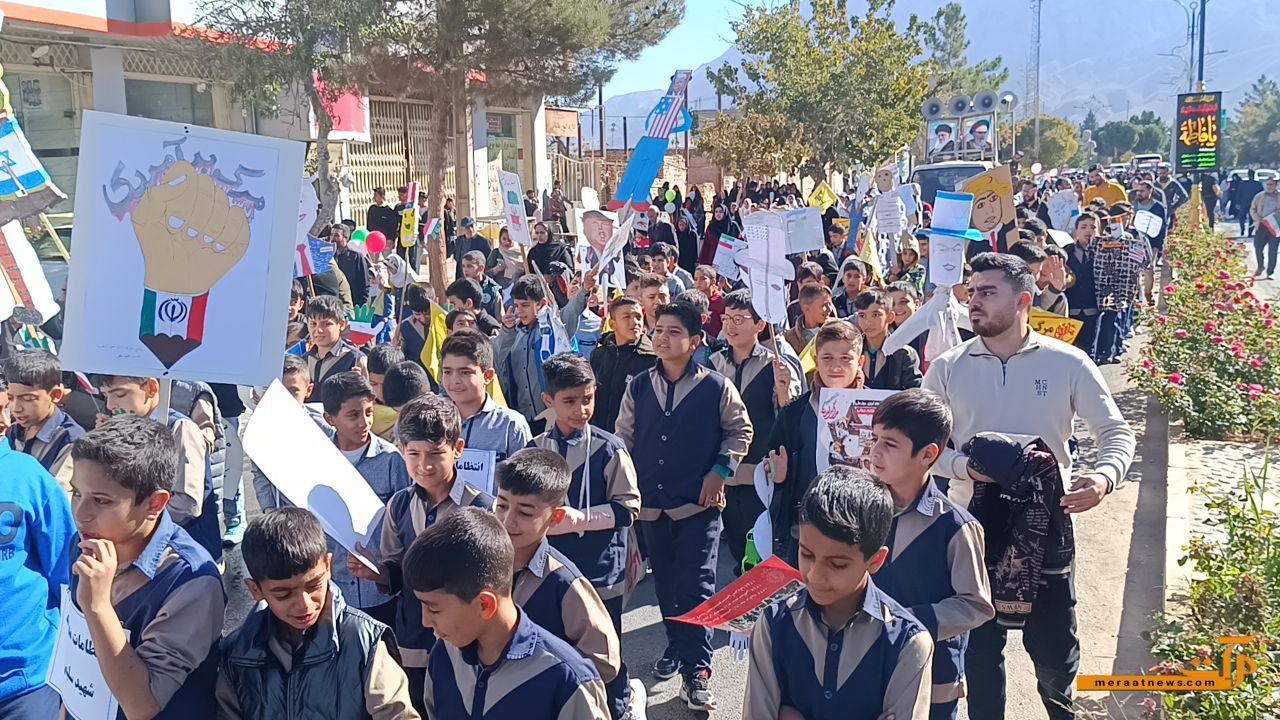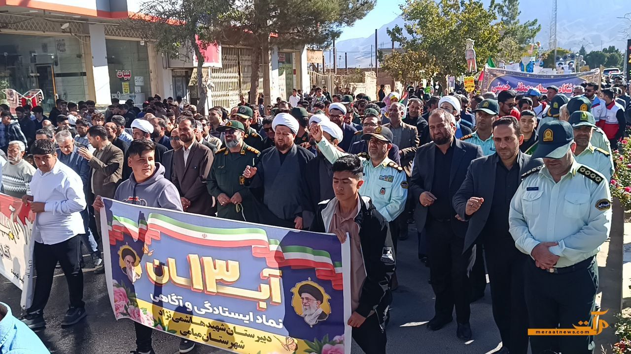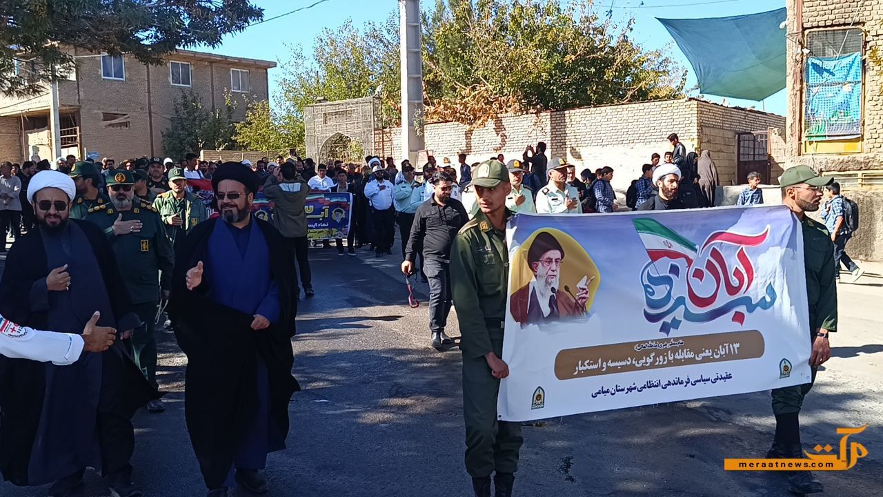 به گزارش خبرنگار گروه چندرسانهای پایگاه خبری تحلیلی «مرآت»، همزمان با ۱۳ آبان، روز ملی مبارزه با استکبار جهانی، مردم شهرستان میامی در راهپیمایی باشکوهی حضور یافتند تا حمایت خود را از انقلاب اسلامی و استقلال کشور اعلام کنند.