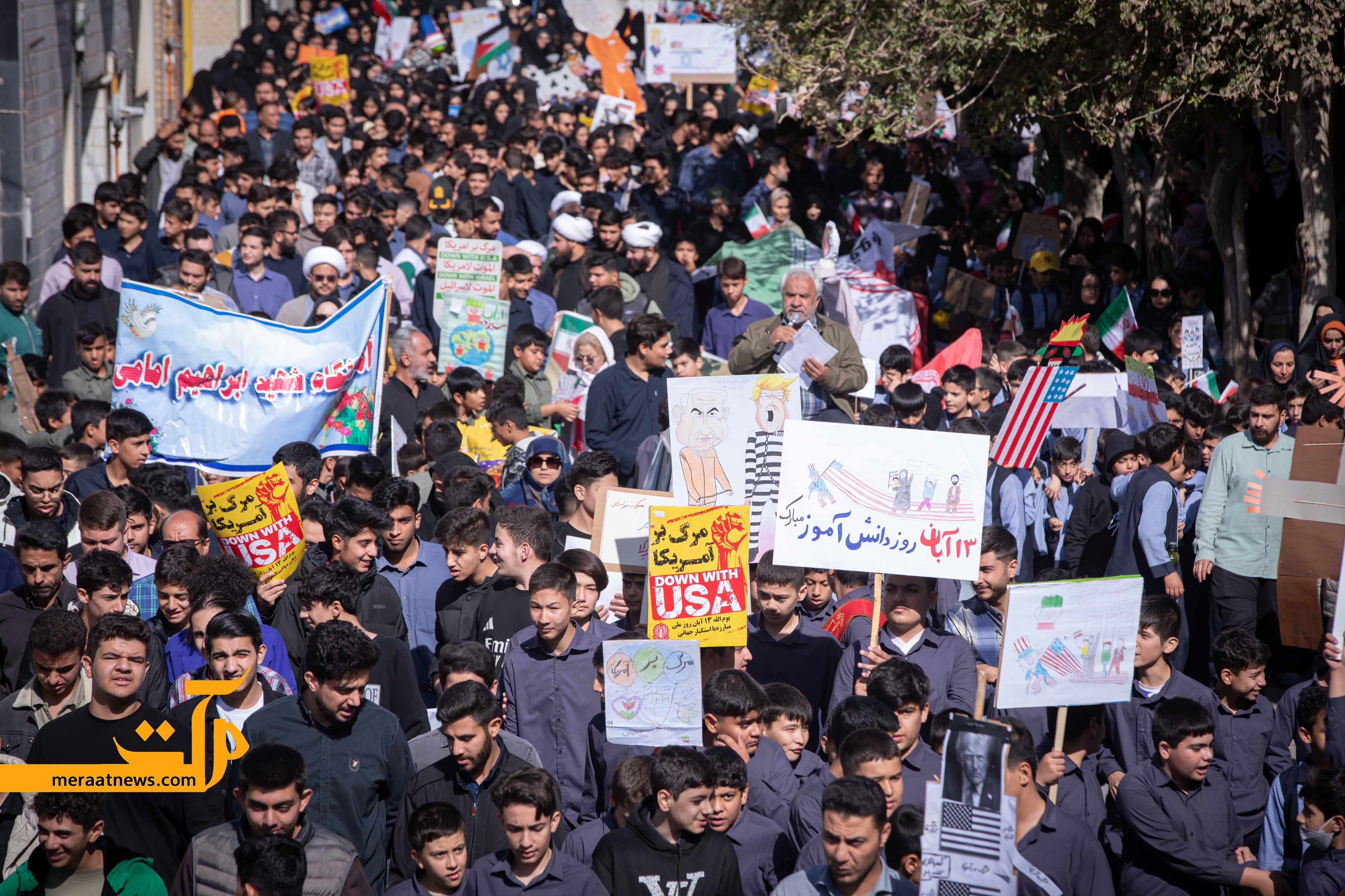 شرکتکنندگان در این مراسم با سردادن شعارهای ضد استکباری، انزجار خود را از سیاستهای خصمانه آمریکا و رژیم صهیونیستی اعلام کرده و بر تداوم راه شهدا و پاسداری از ارزشهای انقلاب اسلامی تأکید کردند.